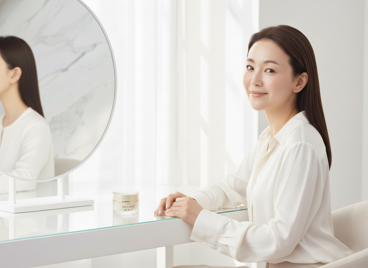 睡眠こそが肌育には最高の時間。このゴールデンタイムを逃さず、贅沢成分が角質層のすみずみまで浸透。朝目覚めたとき、鏡の前で実感する、ハリ感。